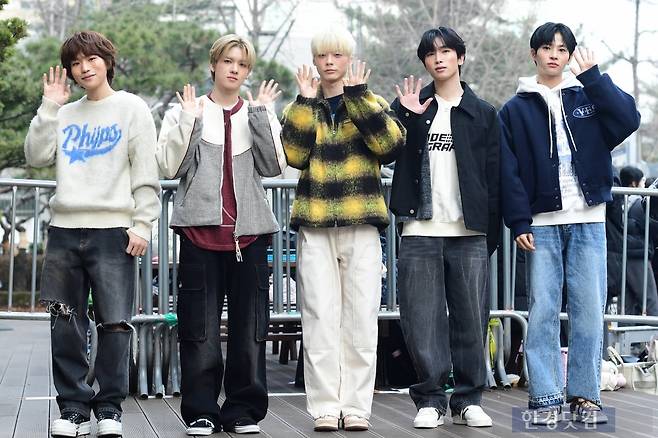 그룹 파우가 2일 오전 서울 여의도 KBS 신관 공개홀에서 열린 '뮤직뱅크' 리허설에 참석해 포즈를 취하고 있다.