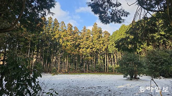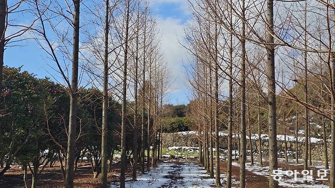 제주시 구좌읍 송당리 안돌오름 비밀의 숲은 가뜩이나 아기자기 예뻤는데 요즘 드라마 ‘웰컴투 삼달리’에 나오면서 더욱 유명해졌다. 내비게이션 안내대로 가다 보면 비포장도로를 만나는데 그 또한 여행의 즐거움이다. 흰 눈이 남아 있는 비포장도로 주변 풍경은 제주의 야생을 고스란히 전한다.