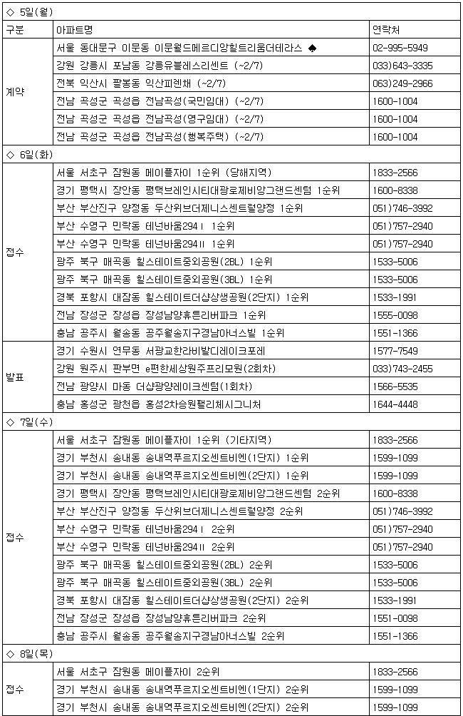 이밖에 부산 부산진구 양정동 '두산위브더제니스센트럴양정'가 청약을 진행하는 등 전국 9개 단지 9천752가구(일반분양 5천787가구)가 청약을 진행한다.