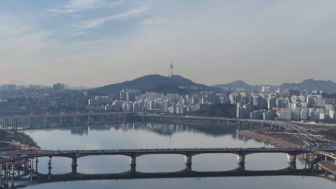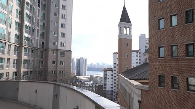 '서울의 3대 언덕 동네' 하면 한남과 흑석, 그리고 여기 옥수가 꼽히죠. 굉장한 언덕배기이고 경사가 심하며 지대가 꽤 높습니다. 사실 옥수동은 산을 등지고 강을 보는 배산임수 지형입니다. 동서에 응봉산과 매봉산이 있고 앞에는 한강이 쫙 펼쳐지거든요. 높은 곳에서 보는 한강뷰, 환상적입니다. 차별화한 장점 중 하납니다.