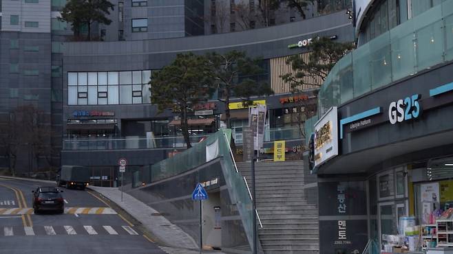 여기도 파크힐스처럼 급경사에 커브가 심하고 지대가 높습니다. 하지만 산자락에 올린 아파트인데도 단차를 맞추려고 애를 많이 썼고, 그 흔적이 곳곳에서 보입니다. 연식에 비해 조경을 아주 예쁘게 잘 해놨습니다. 아무래도 커뮤니티는 파크힐스에 비해 좀 약해요.