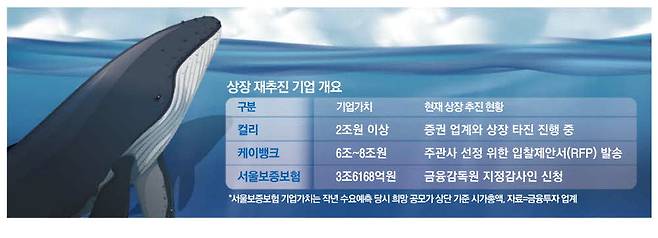 지난해 IPO 최대어로 꼽혔던 서울보증보험도 지정감사인 신청 등 상장 재추진 작업을 추진 중이다. 통상 시장에선 이를 상장을 준비하는 첫걸음으로 이해한다. 서울보증보험은 작년 IPO 시장의 최대어로 주목받았다. 지난해 10월 수요예측 당시 희망 공모가는 3만9500~5만1800원으로, 상단 기준 시가총액이 약 3조6168억원에 달했다. 그러나 기관 참여가 저조했고, 참여 기관 대부분이 희망 공모가 하단 이하를 써내는 등 흥행에 성공하지 못하면서 자진 철회를 결정했다.
