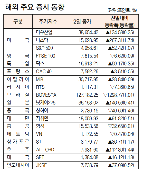 [데이터로 보는 증시]해외 주요 증시 동향(2월 2일)