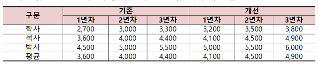 이에 중기부는 올해부터 신진 연구인력의 인건비 기준이 되는 기준연봉을, 학사 1년차의 경우 2700만 원에서 3200만 원으로 500만원 상향조정한다. 또 신규기업 선정평가 시 유연근무 시행 유무, 기업-근로자간 성과공유 등 기업의 근무 환경을 반영할 예정이다.