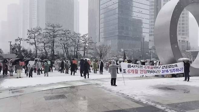 공사 기간을 애초 계약 때보다 이미 6개월 연장했는데 또다시 시공사가 준공까지 시간이 수개월 더 필요하다고 요구했기 때문입니다.