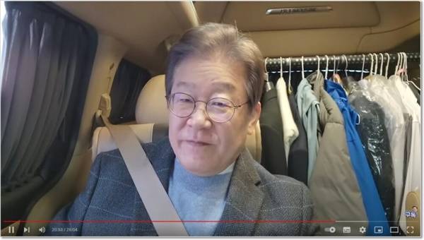 | ▲ 이재명(민주당 대표)이 “멋있게 지면 무슨 소용이겠어요?”라고 최초 발언한 2023년 11월 28일 ‘이재명'(유튜브) 동영상. 2024년 2월 5일 위성정당 창단을 선언한 광주 기자회견문에도 유사한 문구와 표현을 반복해서 사용했다.?동영상 20분~21분 사이.? |