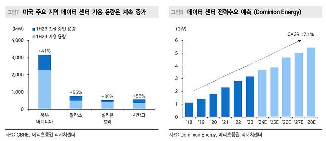 데이터센터의 양적 증가, 전력 수요 확대는 효율적인 데이터센터 관리 및 에너지 이용 필요성을 부각시킨다는 분석도 내놨다. 황 연구원은 "당장 눈에 보이는 데이터센터 증가와 바로 맞물리며 주목할만한 산업이 HVAC"라며 "HVAC는 건물의 난방, 환기, 공조를 의미하는 용어다. 공기 순환 및 여과, 냉각 시스템 등은 데이터센터의 효율적인 에너지 사용에 필요하다"라고 말했다.