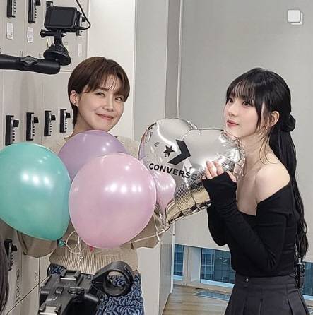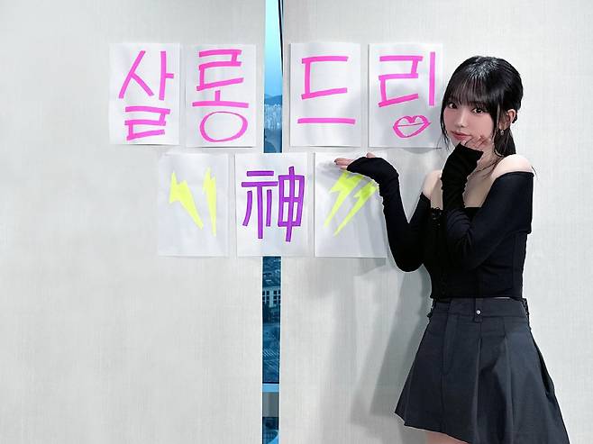 사진 속 카리나는 방송인 장도연이 MC를 맡고 있는 유튜브 웹예능 '살롱드립2' 촬영현장에 있는 모습이다. 카리나가 출연한 '살롱드립2' 현장에서 촬영한 것으로 보인다.