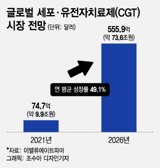 세포·유전자치료제 시장, 2026년 73.6조 전망…연 평균 성장률 49.1%