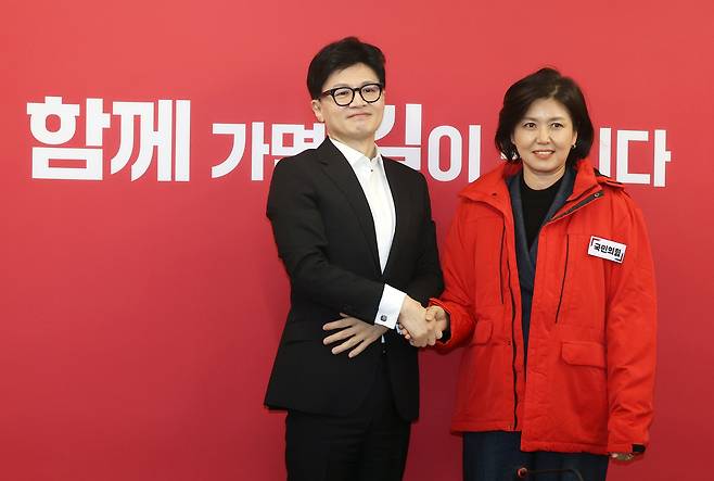 | ▲ 한동훈 국민의힘 비상대책위원장이 지난달 29일 오전 서울 여의도 국민의힘 중앙당사에서 열린 인재영입위원회 국민인재 영입 환영식에서 진양혜 전 아나운서에게 당 점퍼를 입혀준 뒤 기념촬영을 있다. |