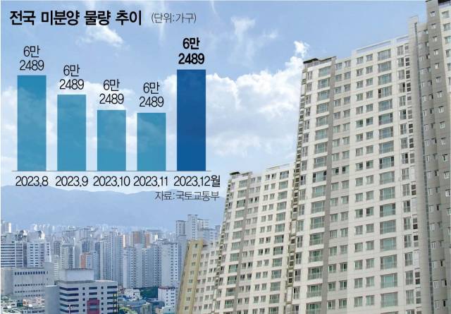 건설사들의 이 같은 눈물의 할인 판매는 미분양 물량이 늘어난 데 따른 것으로 분석된다. 국토교통부가 발표한 주택 통계에 따르면 지난해 12월 기준 전국 미분양 주택은 6만 2489가구로 전월(5만 7925가구)보다 7.9%(4564가구) 증가했다. 월간 기준 미분양 주택이 증가한 것은 지난해 2월 이후 10개월 만이다. 악성 미분양으로 불리는 준공 후 미분양도 증가하는 추세다. 작년 12월 준공 후 미분양은 1만 8576가구로 전년 동월(7518가구)과 비교해 44.4% 급증했다. 부동산 업계 관계자는 “미분양이 해소되지 않아 건설사들이 총선을 지켜보며 신규 분양 시점을 더욱 뒤로 미룰 가능성도 있다”고 말했다.