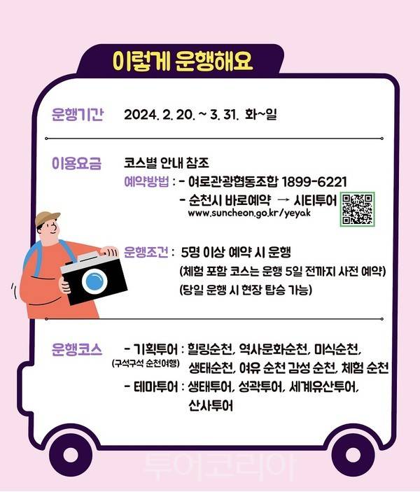 순천 시티투어 이용요금, 코스 등 상세 내용 확인과 온라인 예약은 순천시 바로예약에서 가능하다.
