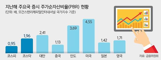 국내 증시 PBR 1.05배… 코스피 0.95배