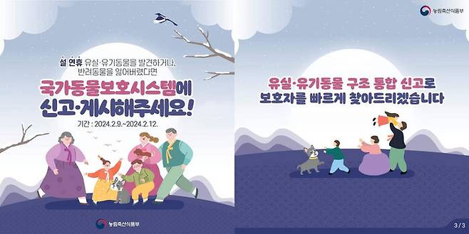 설 연휴 동안 발생하는 유실 및 유기 동물을 위해 농림축산식품부(이하 농식품부)와 각 지방자치단체가 나섰습니다.