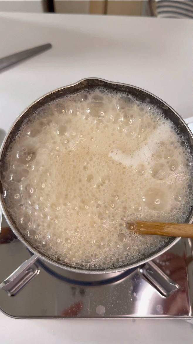 저는 참치액 대신 국간장 2큰술을 넣었습니다. 간은 딱 맞았지만 문제는 코인 육수까지 넣으니 하얗게 되어야 할 떡국이 슬슬 누런색으로 변했다는 것입니다. 끓어오르는 국물 속에서 보이지 않던 떡을 건져 올렸더니 또 다른 난관이 닥쳤습니다. 냉동실에 보관한 떡이 문제였습니다. 갈기갈기 찢어진 떡을 보는 순간 이 콘텐츠를 접어야 하나 잠깐 망설였습니다.