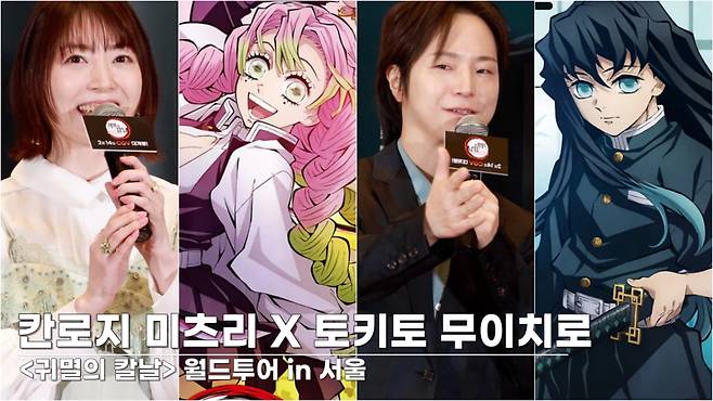 성우 하나자와 카나, 카와니시 켄고가 11일 오후 서울 용산 CGV아이파크몰에서 열린 <귀멸의 칼날: 인연의 기적, 그리고 합동 강화 훈련으로> 월드투어 in 서울 포토콜 행사에 참석했다.