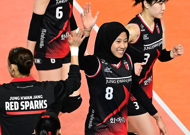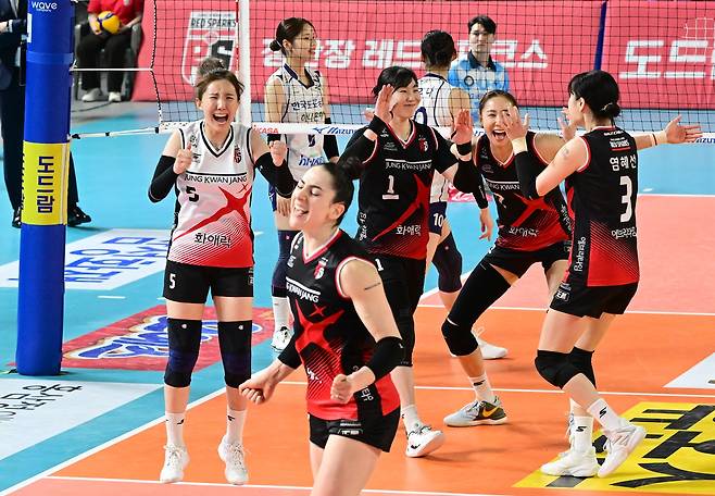 여자프로배구 정관장은 11일 대전충무체육관에서 열린 도드람 2023-2024 V-리그 5라운드 한국도로공사와의 홈경기에서 세트스코어 3-1(25-23 25-23 20-25 25-21) 승리를 장식했다.