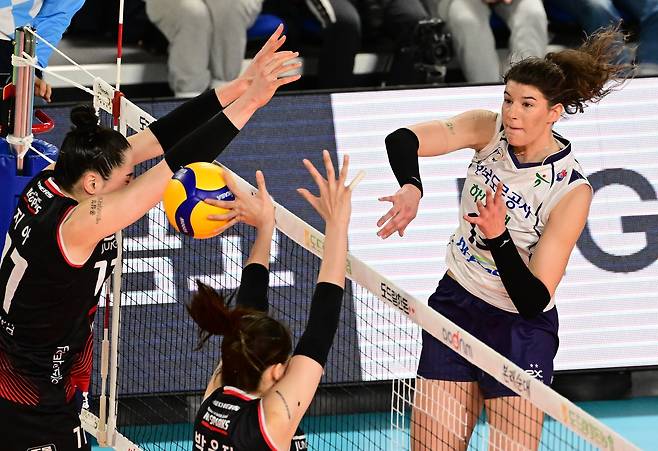 '지아-메가-소영' 삼각편대 떴다…정관장, 도로공사 꺾고 '3위 GS' 맹추격