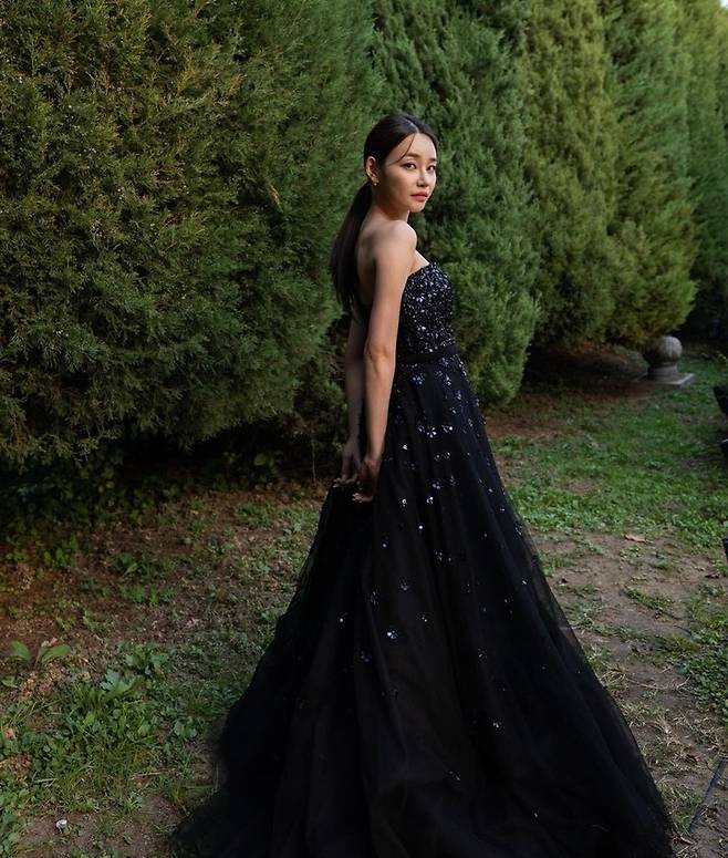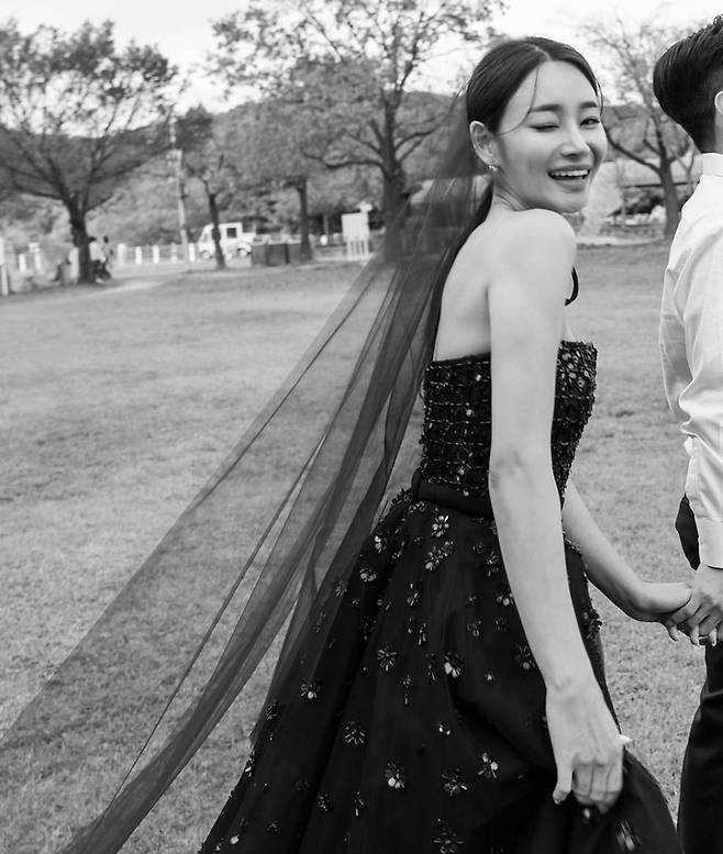 '내가 제일 좋아했던 블랙 드레스'라는 유나의 말과 함께 공개된 사진에는 블랙 드레스를 입은 채 강정훈의 손을 잡은 유나의 모습이 담겨있다.