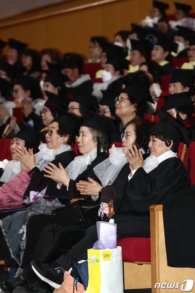 (서울=뉴스1) 이광호 기자 = 13일 오후 서울 서초구 서울시교육청교육연수원에서 열린 2023학년도 초등·중학과정 학력인정 문해교육 졸업식에서 졸업생들이 공연을 관람하며 손뼉치고 있다. 2024.2.13/뉴스1