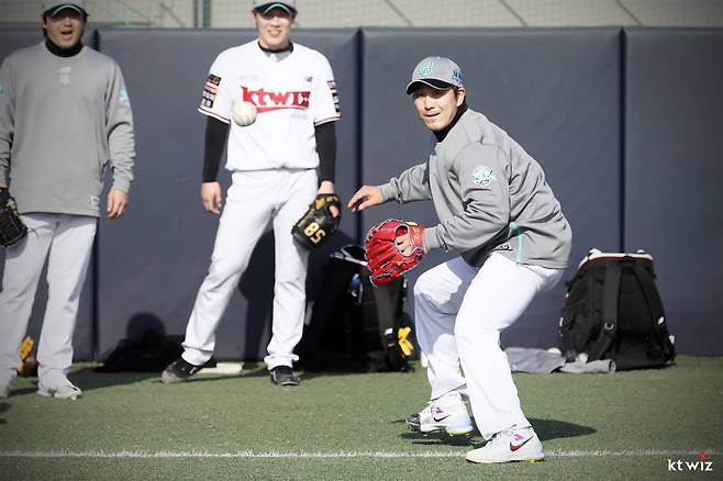 지난 시즌 도중 문득 거울 앞에 섰다. 살찐 듯한 모습이 보기 싫었다. 경기력도 원하는 대로 나오지 않았다. 겨우내 혹독한 식단 관리와 운동을 통해 체중을 14kg 감량했다. KT 위즈 퓨처스(2군)팀의 스프링캠프지인 전북 익산시야구국가대표훈련장에서 만난 우완투수 조이현은 "야구 잘하고 싶어서 살을 뺐다"고 말했다.