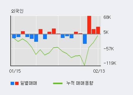 지난 한달을 기준으로 보면 기관이 4.2만주를 순매수했고, 개인들도 6,333주를 순매수했다. 반면 그동안 외국인은 6,229주를 순매도했다. 같은 기간 이 종목의 거래비중은 외국인과 개인이 각각 17.3%, 69.7%로 비중이 높다.