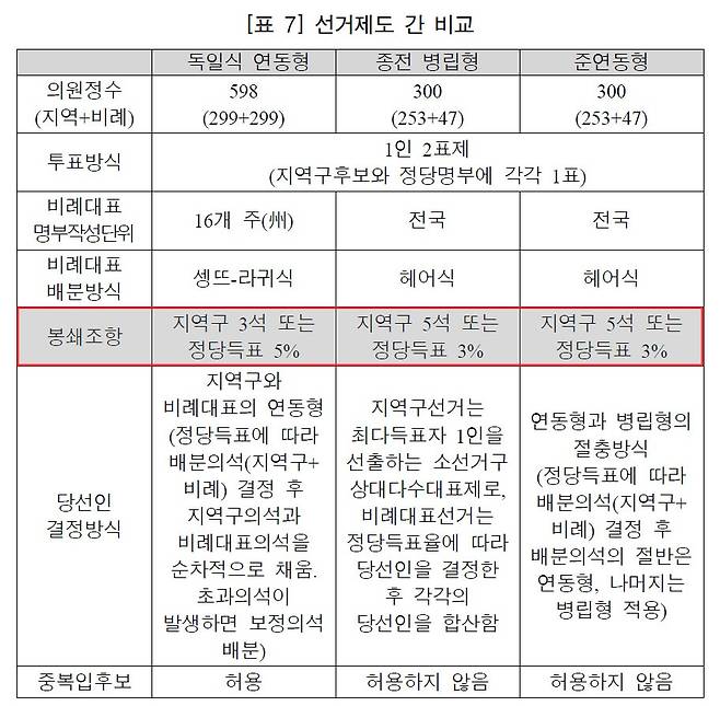 [검증내용] 병립형-준연동형 모두 3% 넘어야... 봉쇄조항은 공통