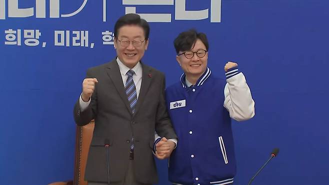 권리당원 투표와 일반 유권자 여론조사 결과를 각각 50%씩 반영합니다.