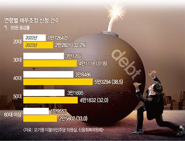 [단독] 고금리·고물가 ‘폭탄’… 40대, 채무조정 신청 38% 급증