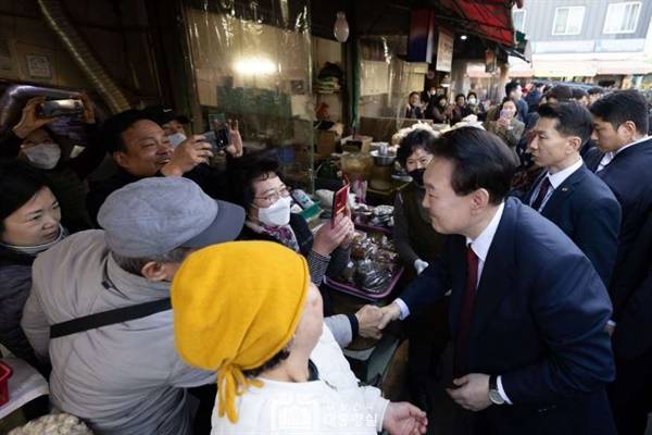 | ▲ 2월 13일 부산 동래시장을 방문한 윤석열 대통령 |