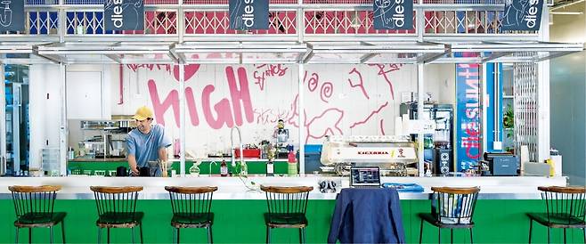 디 진테제 하이카페는 성수동 전경을 내려다 볼 수 있는 높은 곳에 자리해 있다. 마치 예멘의 고원을 떠올리듯 서울의 먼 풍경을 내다볼 수 있는 이곳은 ‘헤이그라운드’라는 공유오피스의 카페를 겸하고 있어 다양한 직종과 직군의 사람들이 경계 없이 모여든다. 알라와 예한은 그들에게 쉬지 않고 예멘의 커피를 설명한다. 그들과 나눈 이야기는 예멘의 산과 골짜기처럼 높고 깊게 쌓여간다.