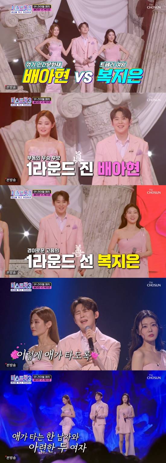 또 다른 강력 우승 후보 배아현과 복지은은 진욱과 함께 무대를 꾸몄다.