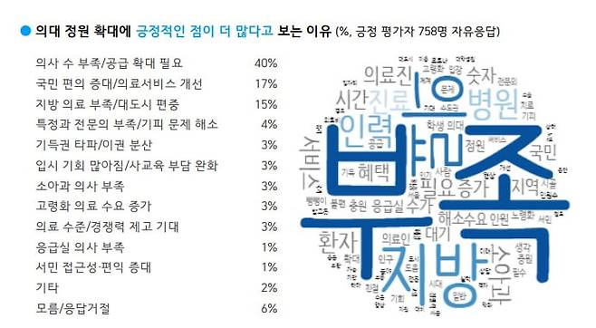 의대정원 확대에 긍정적 76% vs 부정적 16%, 이유는?