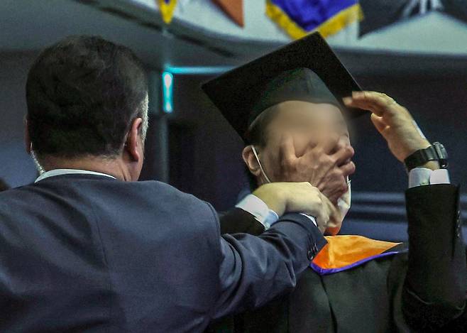 이 졸업생의 항의 목소리가 울려퍼지자 정장을 입은 이들과 졸업 가운을 입은 이들 등 남녀 5~6명이 졸업생을 둘러싼 뒤 팔 다리를 들고 행사장 밖으로 나갔다. 경호처 직원들이 졸업 가운을 입고 좌중에 섞여 있었던 것으로 보인다.