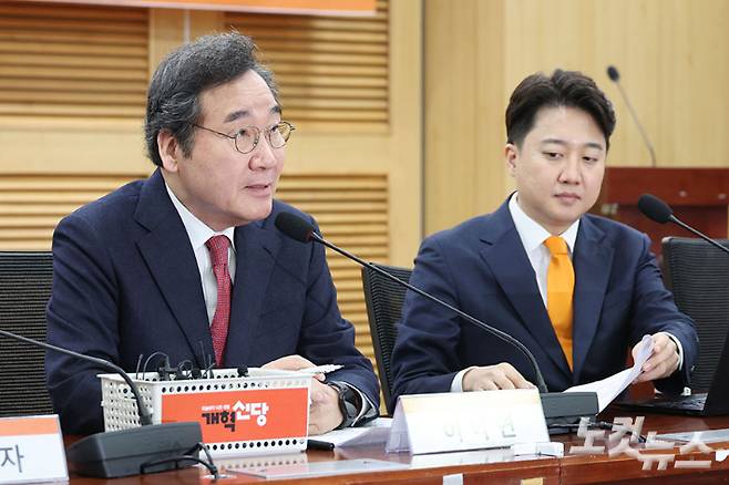 이낙연 개혁신당 공동대표가 13일 오전 서울 여의도 국회 의원회관에서 열린 최고위원회의에서 모두발언을 하고 있다. 이준석 공동대표는 이날 "개혁신당이 가장 선명한 야당으로 우뚝 서서 대안세력이 되겠다"고 밝혔다. 윤창원 기자
