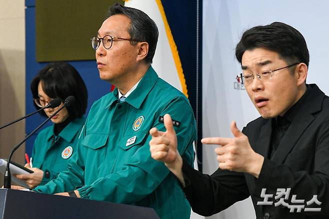 박민수 보건복지부 2차관이 15일 오전 정부서울청사에서 의사 집단행동 중앙사고수습본부 정례 브리핑을 하고 있다. 박 차관은 이날 의료계가 우려하는 의대 증원 부작용의 발생 가능성을 전면 부인했다. 박종민 기자