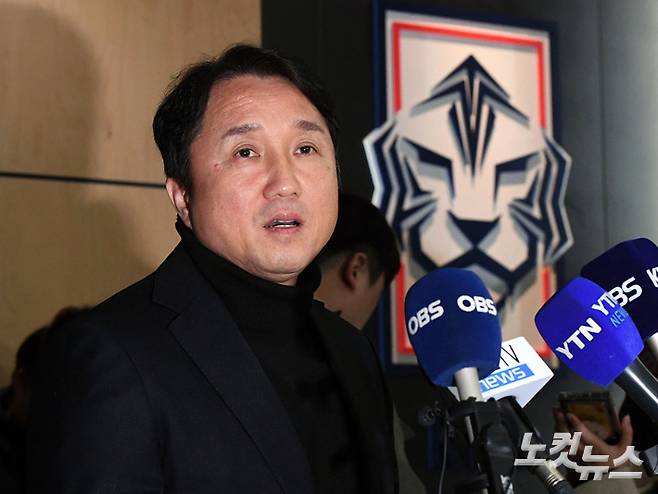황보관 대한축구협회 기술본부장이 15일 오후 서울 종로구 축구회관에서 전력강화위원회 결과를 발표하고 있다. 황 본부장은 "북중미 월드컵 아시아예선을 앞두고 더 이상 대표팀 감독으로 리더십을 계속 발휘하기 힘들다는 판단이 있었다"라며 "(감독) 교체가 필요하다는 의견이 전반적으로 모아졌다"라고 경질을 결정했다고 발표했다. 황진환 기자