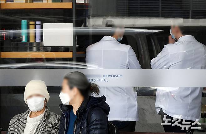 정부의 의대 정원 확대 정책에 반대하는 의사협회가 비대위 체제로 전환하고 오는 15일 전국 곳곳에서 궐기대회를 가질 예정인 가운데 13일 서울의 한 대학 병원 의사들이 모습. 의협은 정부의 2000명 증원 발표 이후 이필수 회장을 비롯한 집행부가 즉각 사퇴했고, 지난 9일 비대위원장으로 김택우 강원도이사회장을 선출했다. 황진환 기자