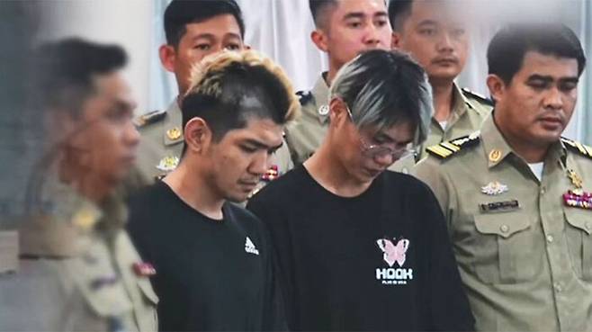 현지 경찰 브리핑에 수갑을 차고 나온 이들은 뒤늦게 사과하고 선처를 호소했지만 소용없었습니다.