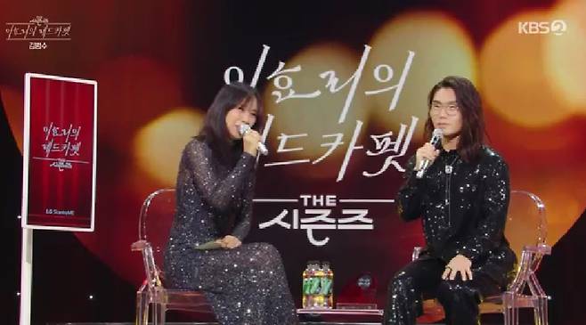 16일 방송한 KBS 2TV '더 시즌즈- 이효리의 레드카펫'에는 김범수가 출연해 화려한 헤어 스타일링과 무대 의상을 자랑했다.