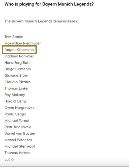 첼시와 바이에른 뮌헨은 9일 영국 런던 스탬포드 브리지에서 故 지안루카 비알리를 기리기 위한 자선 매체를 개최한다. 경기를 앞두고 선수단 명단을 발표했다. 여기에 클린스만 감독의 이름이 껴 있었다.