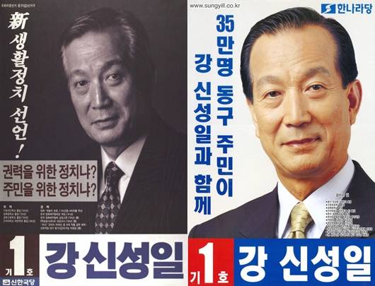 한나라당 소속 신성일은 만 62세의 나이로 2000년 국회의원 선거(대구 동구)에서 당선됐다. 1981년 11대 국회의원 선거 때부터 세 번의 도전 끝에 정계에 진출한 그는 2005년 2월 뇌물수수죄로 구속되는 수모를 겪기도 했다. 권노갑 회고록에 따르면 그는 "국회의원이 되면 영화배우의 인기에다 권력의 날개를 하나 더 다는 셈이라고 생각했는데 실제 해보니 아무것도 아니더라. 오히려 과거보다 더 위축됐다”고 말했다. 사진=중앙선거관리위원회