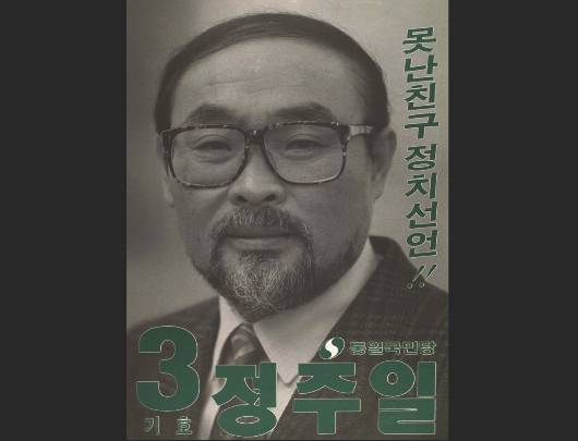 통일국민당 소속 이주일은 만 51세의 나이로 1992년 국회의원 선거(경기 구리시)에 출마해 당선됐다. 통일국민당은 1992년 1월 3일에 현대그룹 정주영 회장이 창당했던 정당이다. 코미디언인 이주일은 정치권을 떠나며 "4년 동안 코미디 공부 많이 하고 떠난다"고 말했다. 사진=중앙선거관리위원회