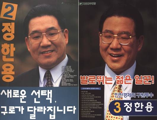 새정치국민회의 소속 정한용은 만 41세의 나이로 1996년 국회의원 선거(서울 구로구 갑)에 출마해 당선됐다. 새정치국민회의는 1995년 김대중의 주도 아래 민주당에서 분당해 창당한 정당이다. 2000년 국회의원 선거에도 선거구를 인천 연수로 바꿔 자유민주연합 소속으로 출마했지만 낙선했다. 사진=중앙선거관리위원회