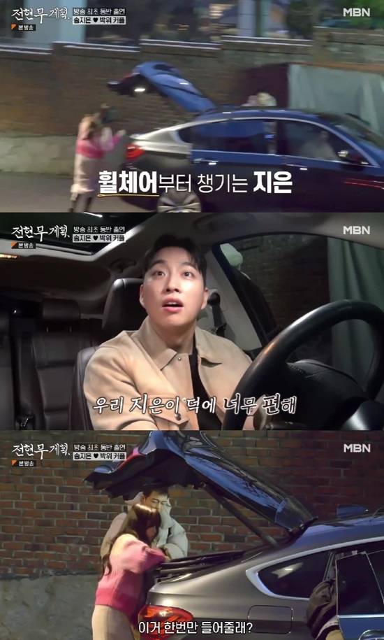 한편 송지은은 차에서 내리자마자 익숙하게 트렁크에서 박위의 휠체어를 챙겨왔다. 송지은은 "내가 내려줄게"라며 빠르게 휠체어를 끌었고, 박위는 "컨디션 괜찮냐"고 자신을 위하는 송지은을 걱정했다.