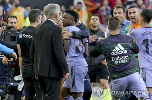 당시 발렌시아 관중들은 비니시우스를 향해 '원숭이'라고 외쳤고, 이에 격분한 비니시우스가 관중석으로 다가가 설전을 벌였다. 경기 진행에 방해가 되자 심판이 달려와 비니시우스를 달랬다. 발렌시아 주장 호세 가야도 관중들을 말렸다.