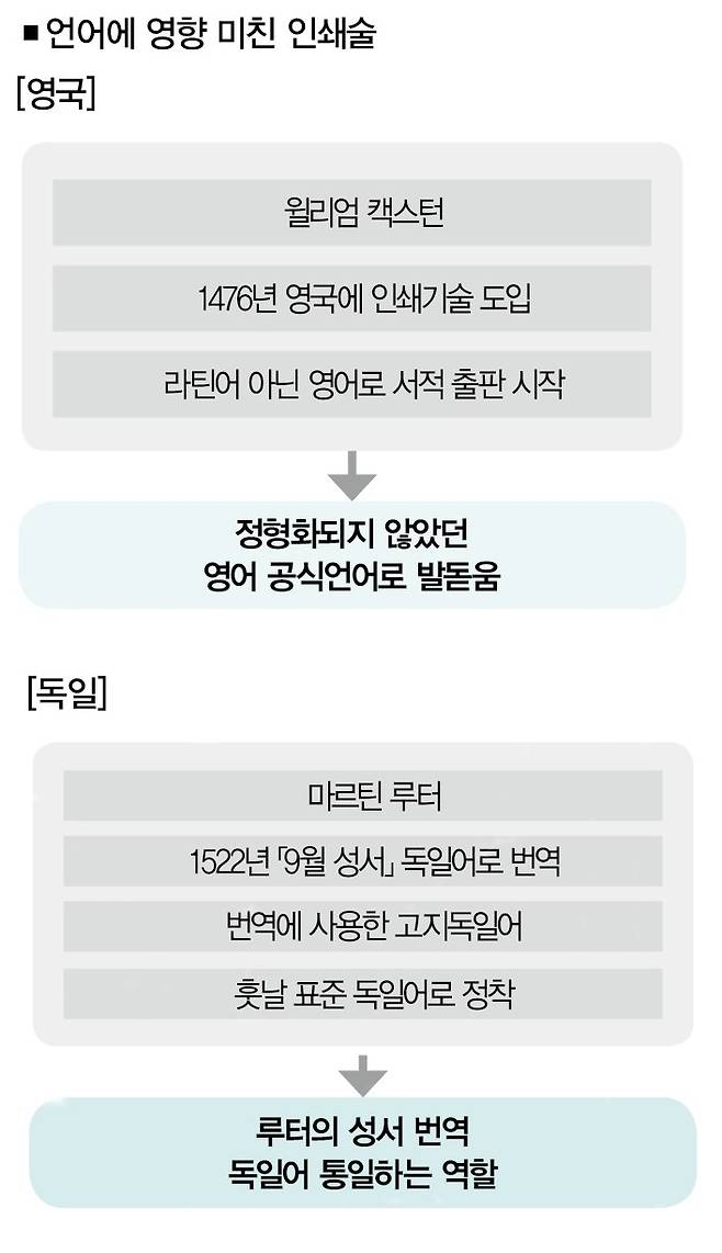 구텐베르크의 눈부신 인쇄기술은 르네상스ㆍ계몽주의ㆍ종교개혁과 맞물려 유럽을 중세의 우매함과 암흑에서 벗어나게 하는 원동력으로 작용했다. 특히 소수가 독점하던 성경이 구텐베르크의 인쇄기 덕분에 다수가 공유할 수 있는 지식으로 변화한 건 혁명적인 사건이었다. 이 변화는 엘리트 집단의 폐쇄성을 무너뜨리고 대중 교육의 시작을 알리는 '신호탄'이나 다름없었다.