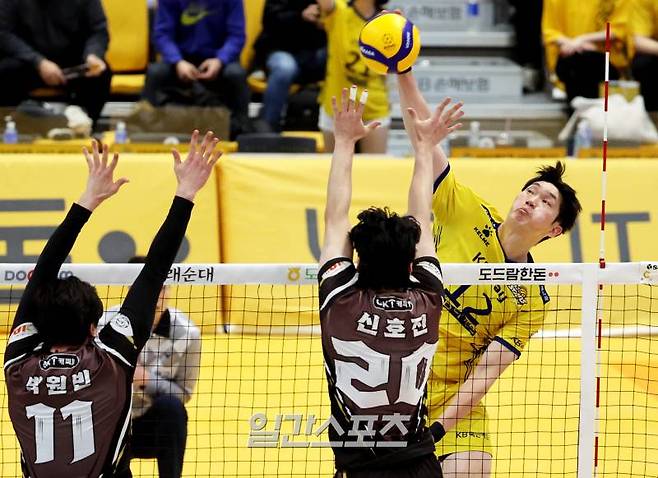 2023-2024 프로배구 V리그 남자부 KB손해보험과 OK금융그룹의 경기가 18일 오후 경기도 의정부체육관에서 열렸다.