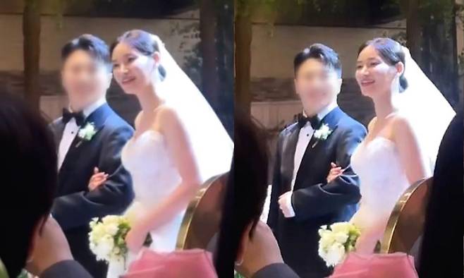 공개된 영상 속 유나는 흰색의 웨딩드레스를 입고 작곡가 남편 강정훈과 팔짱을 낀 채로 걸어가고 있었다. 활짝 웃는 미소로 지인들에게 반갑게 인사하며 행복한 모습이었다.
