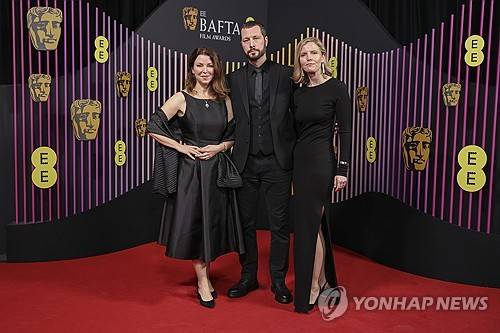 PBS editor-in-chief of frontline and producer Raney Aronson, from left, director, producer and Associated Press journalist Mstyslav Chernov, and editor and producer Michelle Mizner, pose for photographers upon arrival at the 77th British Academy Film Awards, BAFTA's, in London, Sunday, Feb. 18, 2024. (Photo by Vianney Le Caer/Invision/AP) 021824130107, 21334631,